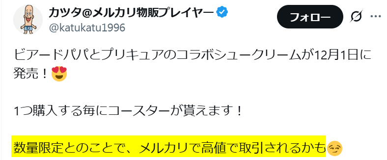 ビアードパパとプリキュアのコラボシュー、シュークリームだけでなく「キラキラ!紙製コースター」にも注目が集まっているんですよね。