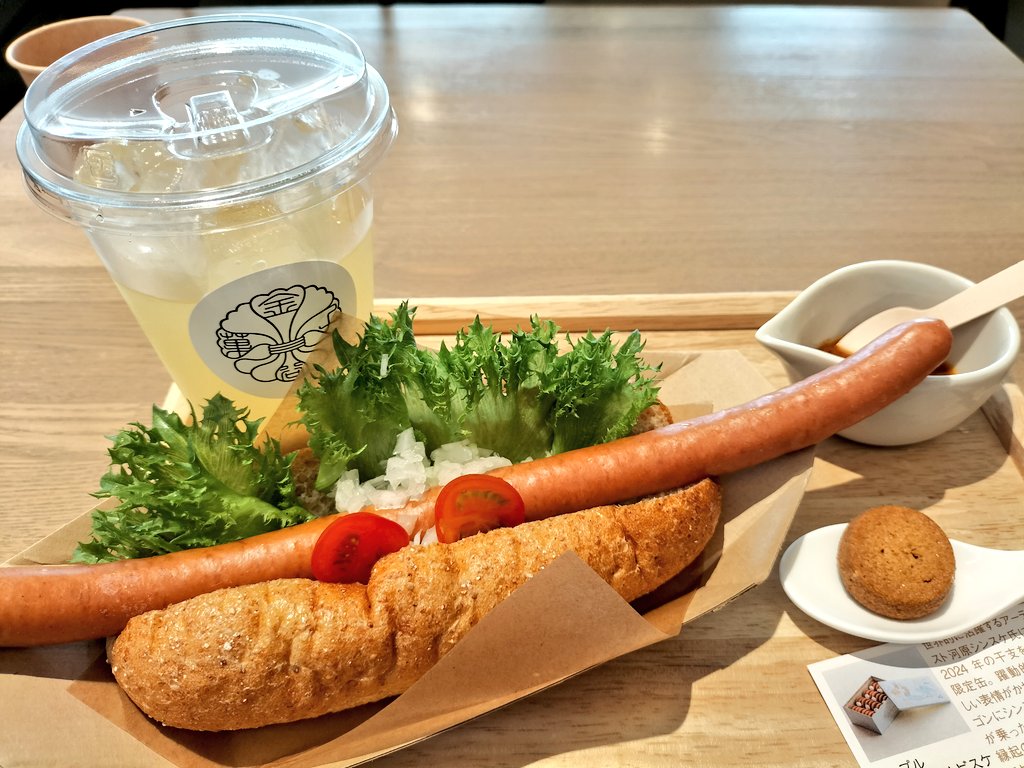 全粒粉のバンズに那須豚のロングソーセージを挟んだホットドッグは、「食べ応えがある」と評判です♪